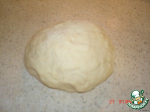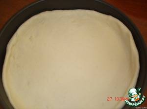 Раскатать тесто и уложить на противень, смазанный маслом,
