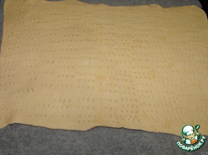 Слоеное тесто разморозить и выпечь два коржа, как указано на упаковке.