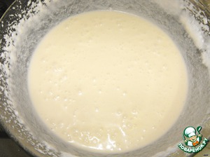 Влить горячий сахарно-желатиновый раствор, затем добавить ванильный сахар. -