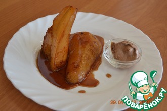 Вынуть груши на блюдо. Сироп уварить, добавить 1 ст. л. ликера, 4 ст. л. желе черной смородины (или просто желатин) и 1 ч. л. крахмала, чуть доварить. После охлаждения полить груши.