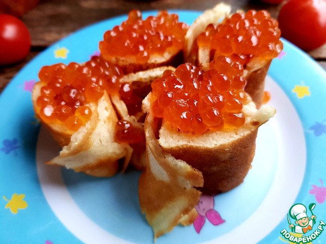 P.S. Была так увлечена розочками, что забыла смазывать блины, но потом в розочки по кусочку масла положила под икру
