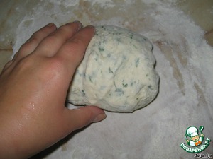 Добавить муку, столько, сколько возьмёт. Я написала стакан, но муки уйдёт меньше. Просто должно получиться довольно эластичное и мягкое тесто. Вымешиваем его немного на столе, присыпанном мукой.