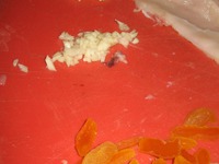 Измельчить чеснок (не выдавливать, а мелко нарезать), сыр и курагу, нарезать соломкой. |