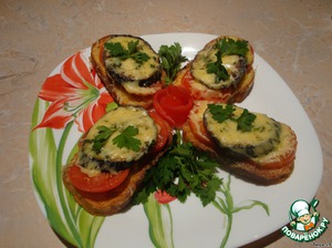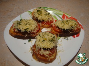 На гренки выложить сначала помидоры, затем баклажаны обжаренные и в последнюю очередь тертый сыр.