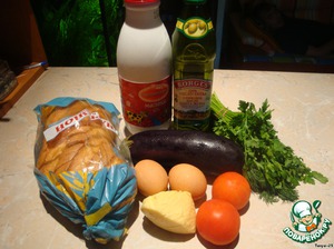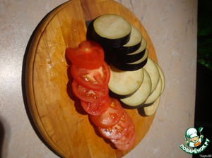 Нарезать батон (у меня готовый нарезной) на куски толщиной приблизительно 1см, баклажан и помидор кружочками.