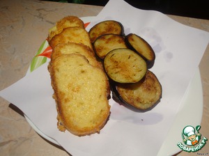 Выложить гренки и баклажаны на салфетку (чтобы вытек лишний жир).
