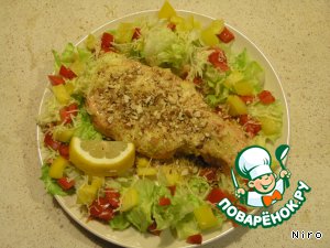 Нашу вымытую и обсушенную рыбку солим, слегка капаем на нее лимонным соком и оставляем полежать. (Правило четырех "П": почистить, помыть, посолить, подкислить.)