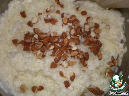Добавляем в кашу взбитые сливки. Всё тщательно перемешиваем.