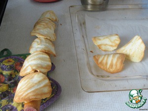 Еще горячим (осторожно!) печеньям придать форму чипсов с помощью скалки (или чего-то подобного). Когда печенье остынет, оно станет хрустящим. Приятного аппетита!