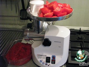 Смешать помидоры, хрен, чеснок