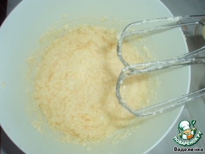 Тем временем делаем тесто: масло + сахар, ванильный сахар, яйцо. Хорошо взбить миксером.