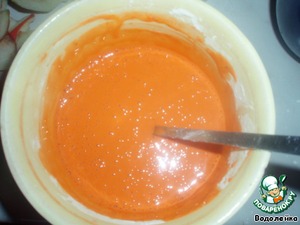 Пока закипает, растворить в яблочном соке порошок пудинга. Вымешать хорошо, чтобы не было комочков.
