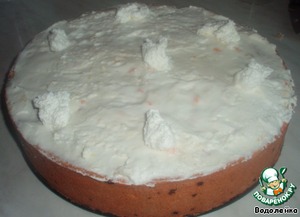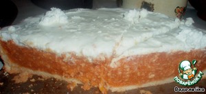 На ОСТЫВШИЙ пирог слоем нанести сливки, украсить по желанию. И поставить в холодильник на пару часов.