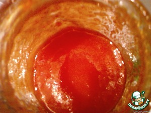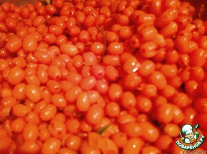 в массу добавляем сахар (1 часть облепихи, 2 части сахара), тщательно перемешиваем. Получается вот такое сырое "варенье" -