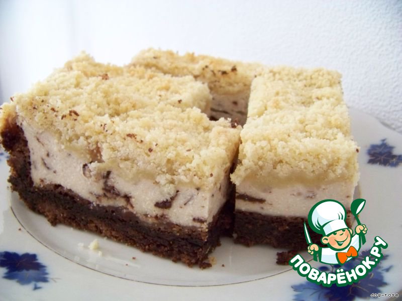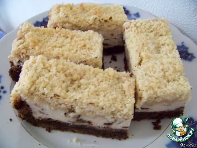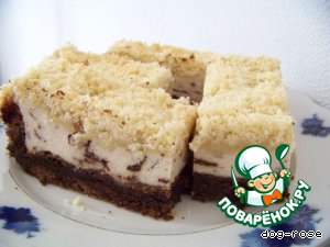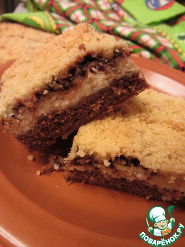 Неожиданной, но очень приятной оказалась моя победа на конкурсе статей… В честь этого события испечен данный пирог, который посвящается в первую очередь замечательным победительницам Викуле (Виколь) и Светику (DAISY), в чьей компании мне так почетно оказаться. Хочется еще раз поблагодарить организаторов конкурса, т. е. администрацию «Поваренка» и компанию Tefal. И, конечно, сказать спасибо друзьям, которые поддерживали меня на конкурсе, - опять Вике и Свете, Ируне, Верусечке, Лилечке (ledi701 ), Катюше (Катиша), Оксаночке (sana swiss), Танюше (ТАМюшка), Светланке (swetiksemizwetik), Леночке (Leena), Анечке (kitri). Конечно, более стратегически верным в данном случае было бы какое-нибудь диетическое блюдо… но ведь вкус победы сладок))) Итак, очень вкусно. Нежно. Просто готовить. Рассыпчатый нижний слой, нежнейшая начинка с шоколадными кусочками, сверху слой посыпки …