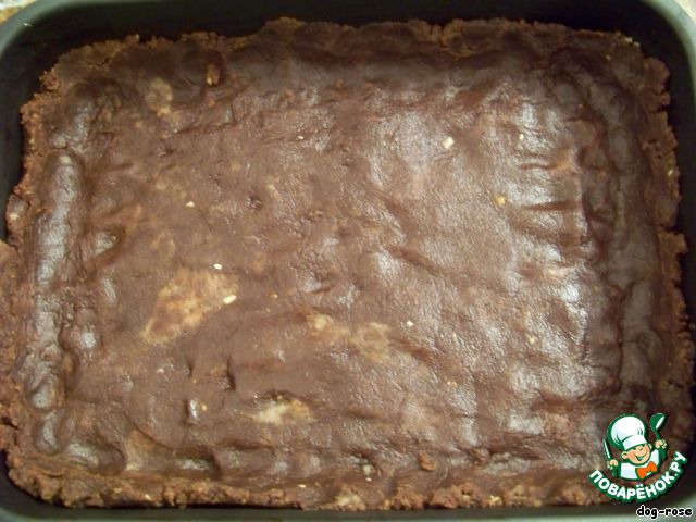 И я еще добавила смолотую шоколадку, точнее, шоколадные конфеты (в общем, что нашлось), все перемешиваем и выливаем на тесто.