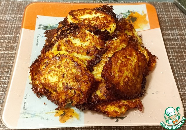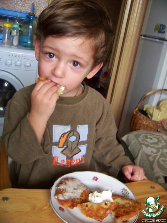 Описание: Я готовлю их уже лет 7 именно таким способом. Без муки, но с... творогом! Попробовала впервые на западной Украине (отсюда и название), с тех пор ем или так, или никак.