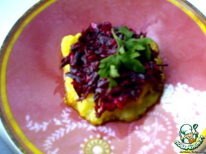 выложить пюре в форму для запекания в виде красивых лепешечек.
