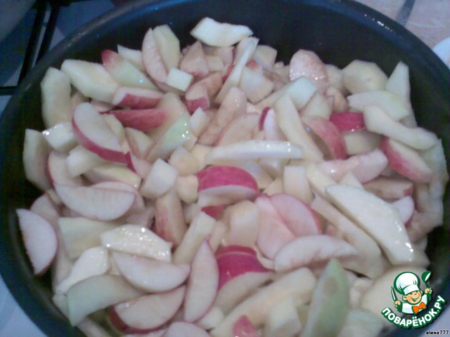 Такую же процедуру проделываем с кабачками и яблоками, порезанными дольками.