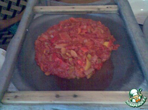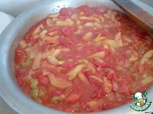 Затем в уже густую массу ложим горький перец, овощи и варим ещё 30 минут.