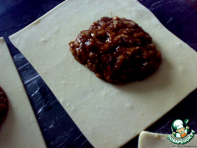 выкладываем по 2-3 ч.л. начинки на каждый квадратик