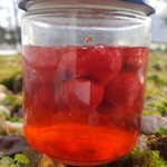 Переложить в банку. Уксус немного подогреть и залить им ягоды.