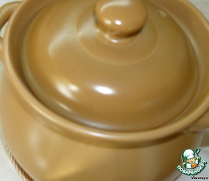 • Заливаем кипятком на 1/3 горшочка. Закрываем его и отправляем в духовку минут на 20.