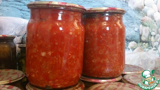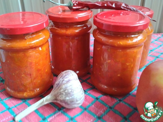 На 2 кг перца: 1 кг помидоры и 1 кг яблок (без кожицы), количество остальных специй чуточку увеличьте.