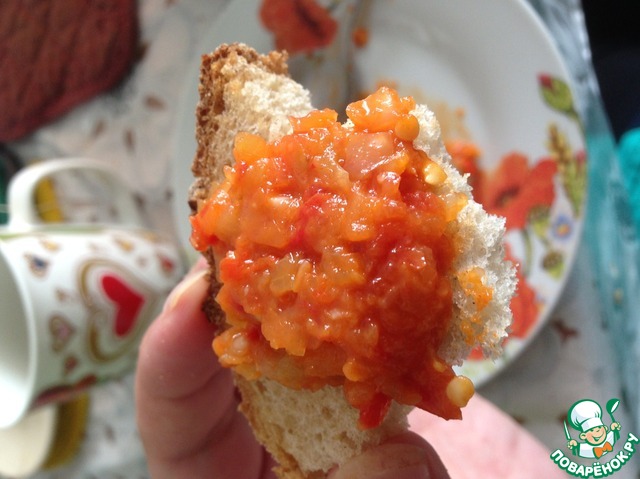 И еще: зимой с «Айваром» можно приготовить очень вкусную закуску: смешать его с деревенским (крупно зерновым) творогом. Кроме того, можно добавлять в мясные блюда при тушении. Он дает мясу некоторую остроту (легкую пикантность!) и очень красивый цвет.