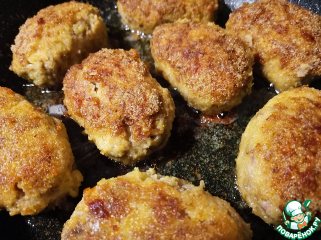 На фото хорошо видно, как котлетки увеличились в размере, как увеличилась их кукурузная шубка!