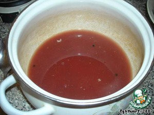 Стёкшую жидкость нужно перелить в стакан для отстаивания. Когда маринад отстоится (около 15 минут), вы увидите, что он четко разделился на 2 части: верхняя – сам маринад, вторая, нижняя часть – муть, которую мы просто выльем. -
