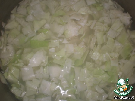 Белокочанную капусту нарезаем шашечками. В кипящий бульон засыпаем её и варим 15-20 минут. Если капуста квашеная, то её предварительно нужно потушить до мягкости и положить в бульон вместе со свеклой.