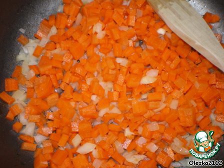 На масле (сливочном или растительном) пассеруем лук, затем добавляем морковь.