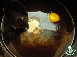 Снимаем нашу смесь с огня и добавляем по одному желтку. После каждого желтка xорошо перемешиваем.