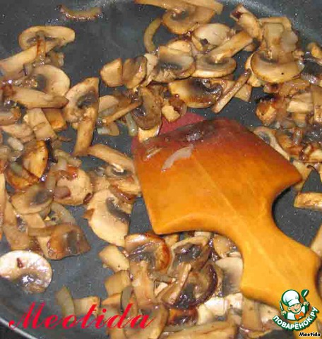 Грибочки до золотистой румяности обжариваем с измельченным лучком