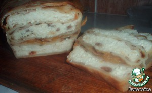 Готовим начинку: смешиваем творог, яйца, сахар (сахар здесь по вкусу), ванильный сахар, корицу (тоже по желанию), муку (или манку), изюм (распарить предварительно).