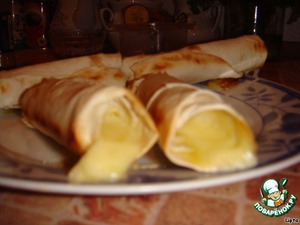 Нарезаем сыр брусочками. Крупно. Такой толщины, какой хотите трубочки, которые будете кушать. =) -