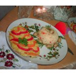 Отличное диетическое блюдо. Без специй и соли. Все отварное. Но это такое вкусное сочетание продуктов! А соус придает блюду мягкий вкус. Самый лучший способ придать блюду яркость запаха и вкуса - полить правильным соусом.