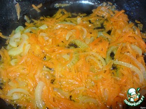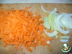 Морковь натереть на крупной терке, лук нарезать полукольцами.