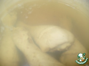 Как закипит, снять пену, немного посолить и варить 30 мин. на медленном огне.