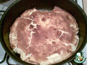 Когда оно будет готово, слегка прижарьте, добавьте чеснок, выдавленный через чесночницу и выкладывайте на блюдо вместе с небольшим количеством жидкости. -