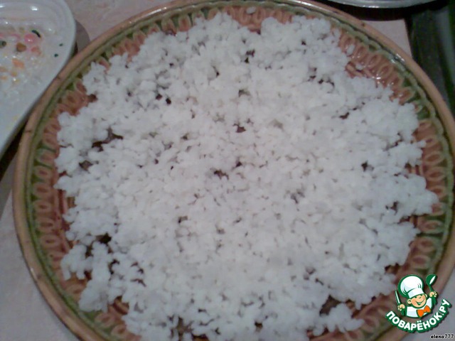 • Сверху на сердце выкладываем вареный рис.