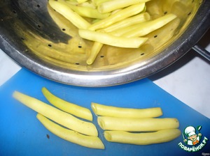 Стручковую фасоль хорошо вымыть, обрезать хвостики (оба у каждого стручка). Если стручки длинные, разрезать каждый пополам, наискосок.