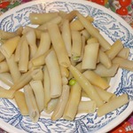 Так фасоль выглядит уже после заморозки. Теперь её можно добавлять в салаты, делать "Лобио из стручковой фасоли", тушить, жарить, добавлять в суп и т. д. В суп добавлять в самом конце варки. Тушить и жарить - 5 минут.