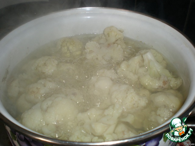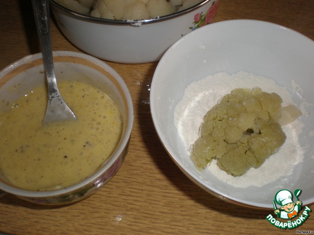 соцветие капусты обвалакиваем в муке потом в яйцах