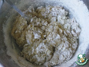 Замесить тесто. Оно должно получиться мягкое. Будет немного прилипать к рукам,но посыпьте его немного мукой, когда будете раскатывать коржи.
