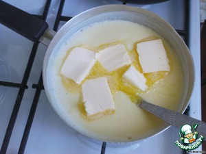 Добавить разрыхлитель и, когда смесь побелеет и увеличится в объеме в два раза, снять с водяной бани и охладить.