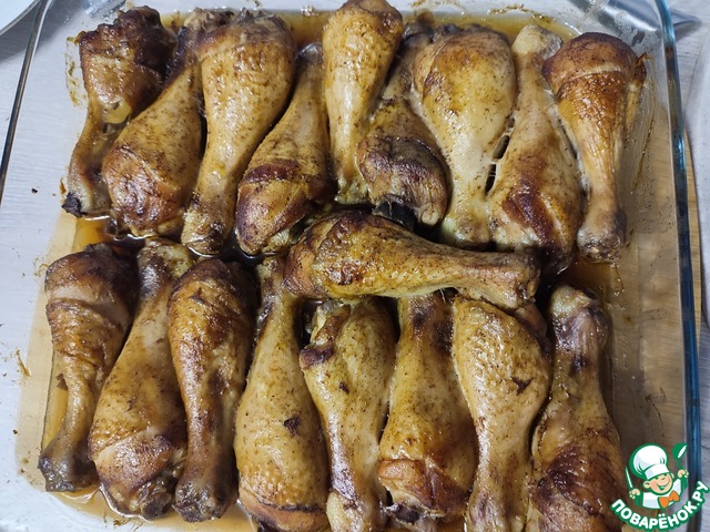 Вкус маринада не понравился в готовом блюде, очень много выделилось жидкости, но сухими голени не стали. Мясо легко отделялось от косточки.