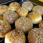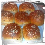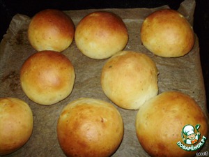 Делим на булочки, раскладываем на противень, даем им подняться минут 30, смазываем яйцом, или молоком, или чаем - кому что нравится, можно посыпать сезамом или тмином.