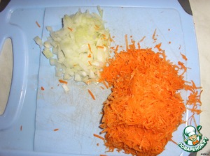 Одну морковь тру на мелкой терке и одну луковицу мелко режу это для фарша.